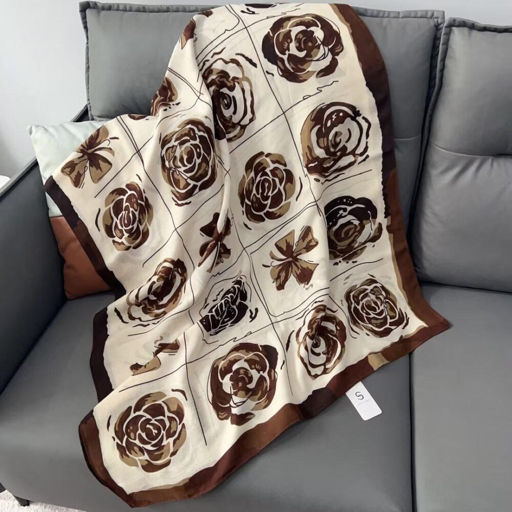 The Mal cotton square-shaped brown warm scarf combines traditional style with modern functionality. Crafted from premium cotton, this scarf is lightweight yet warm, making it perfect for chilly weather. Its square shape allows for versatile styling, while the neutral brown tone complements a wide range of outfits.